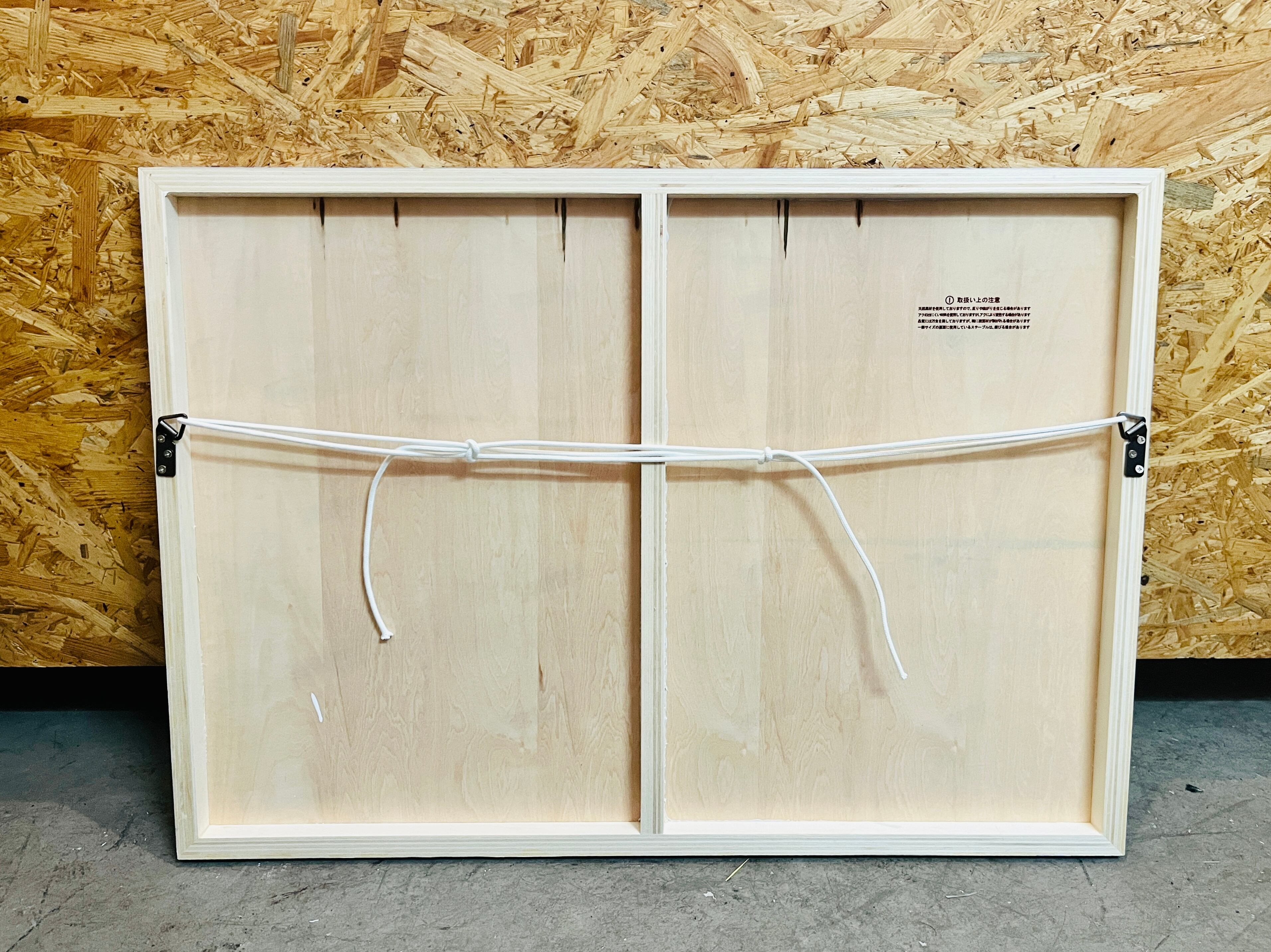 キャンパスの後ろに壁掛け用の紐を取り付けています。